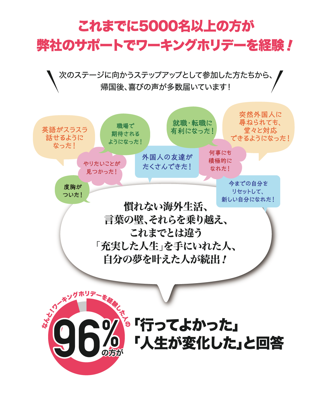 これまでに500名以上の方が弊社のサポートでワーキングホリデーを経験!